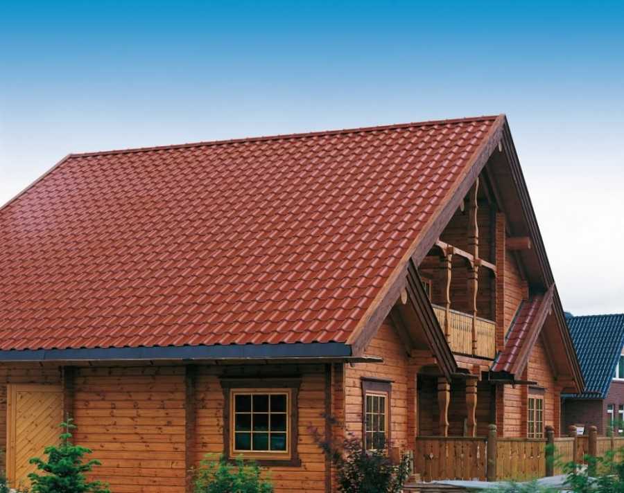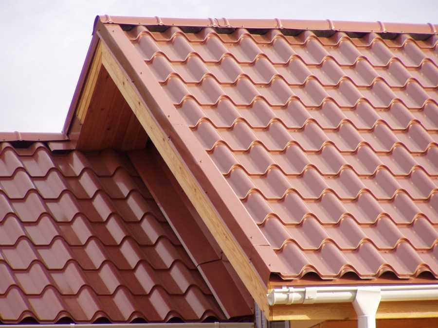 Металлочерепица. Это универсальный кровельный материал. Он довольно легкий (5 кг на 1м²) и состоит из листов оцинкованной стали. Металлочерепица очень скользкая, поэтому в зимнее время следует ограждать придомовую территорию на случай сползания большого количества снега. При покупке данной кровли лучше отдать предпочтение проверенным импортным производителям, например, Руукки (Финляндия) с толщиной листа 0,5 мм.