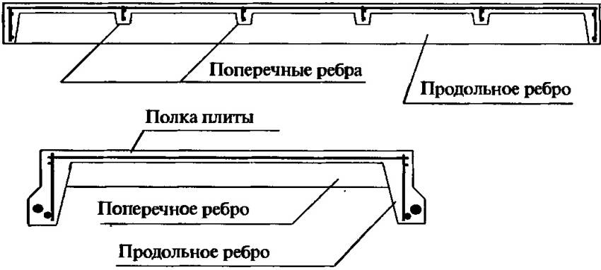 Ребристые плиты, могут изготавливаться как с проемами, так и сплошными. Этот момент позволяет их применять для создания чердачных помещений или подвалов.