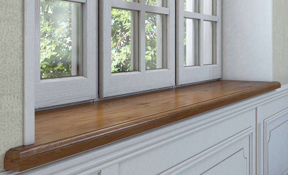 Среди всех сортов древесины наиболее подходящими для подоконных досок считаются бук, орех, дуб, ясень. Нередко применяются и менее дорогие лиственница, сосна. Изделия не только хорошо выглядят, но и обладают высокой тепло- и шумоизоляцией, экологически безопасны, долговечны. Из древесины можно делать изделия самых причудливых форм. Длина и ширина подоконника могут быть любыми.