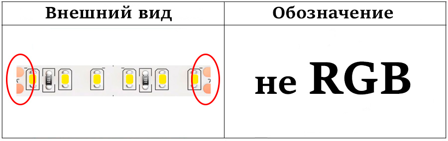Монохромные всегда светятся каким-то одним цветом. RGB могут светиться разными оттенками, но при этом данный цвет у них будет одинаков по всей длине.