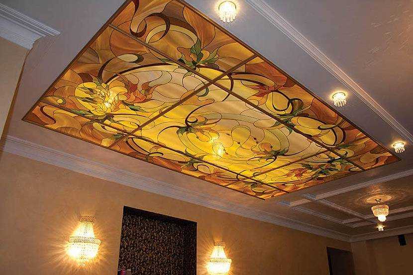 Потолочные витражи относятся к виду навесных потолков и являют собой панели, сделанные из стекла. На стекло может быть наносить хоть какой набросок. Витражный навесной потолок своими руками установить легко. И без того..Приступим!