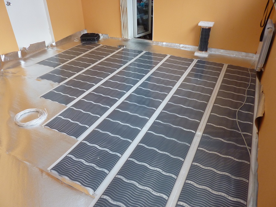 Это наиболее простая система из всех доступных. Ее легко обустроить. Нагревательный элемент представляет собой пленку. Поставляется теплый пол в рулонах шириной 0,5 м. Инфракрасные системы можно без каких-либо опасений применять с любыми типами финишных покрытий. Если в квартире будет ламинат, специалисты рекомендует именно ИК-пол. Начать укладку напольного покрытия можно сразу же после того, как завершится процесс монтажа теплого пола. Инфракрасный подогрев более экономичен, отличается простым устройством и его монтаж более дешевый. Устанавливать пленку можно как и в стяжку, так и обойтись без нее.