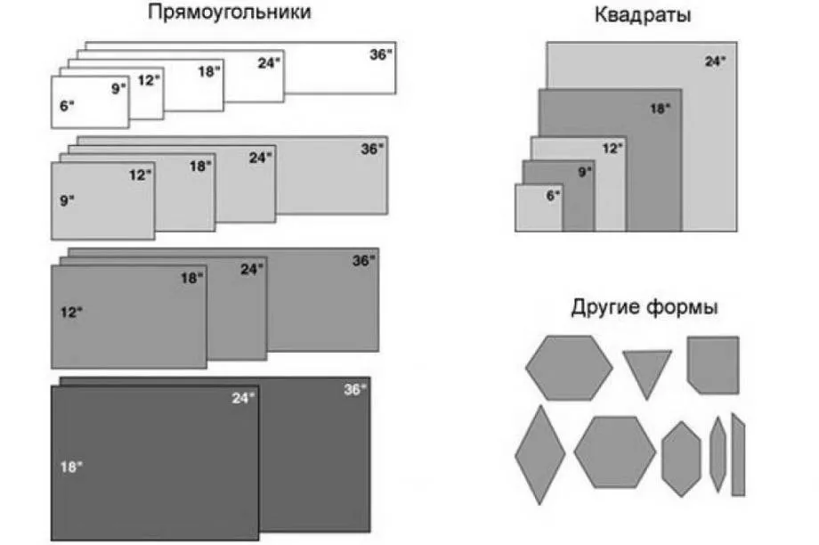- Квадратные: 20х20, 30х30, 32х32, 33,3х33,3, 40х40, 45х45, 50х50 см.