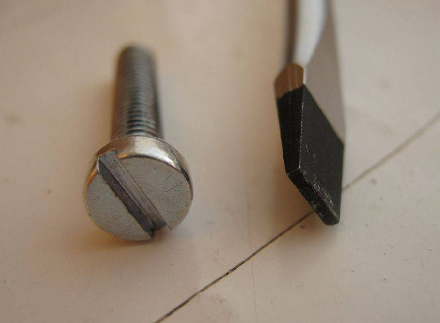 Главное достоинство такого крепежа – универсальность. Если толщина шлица отвертки не превышает ширину прорези винта – можно использовать инструмент более широкий, чем винт.