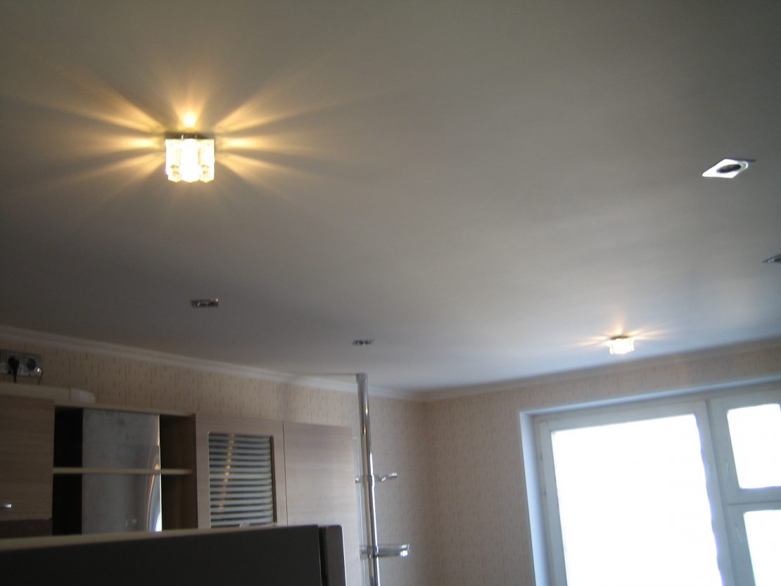 - Такой потолок не ограничивает в выборе типов светильников и мощности ламп.