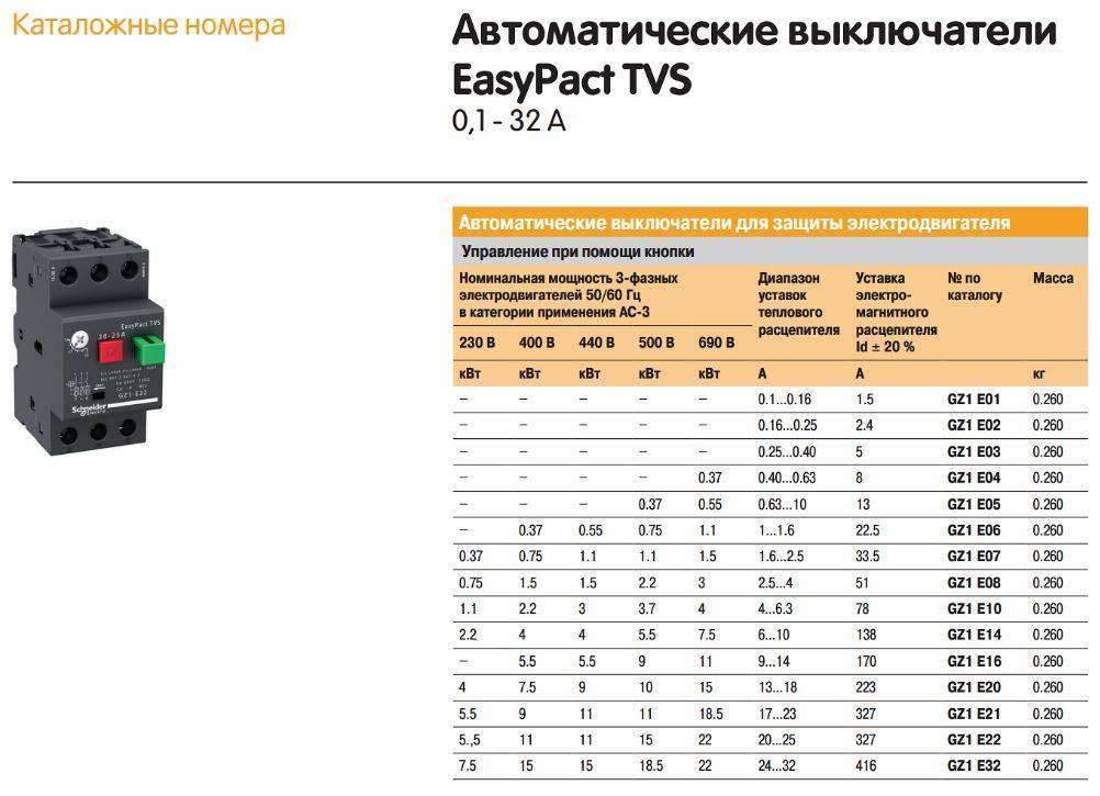Для упрощения выбора защитного автомата существует таблица, где номиналы автоматов соответствуют мощности однофазной и трёхфазной нагрузки: