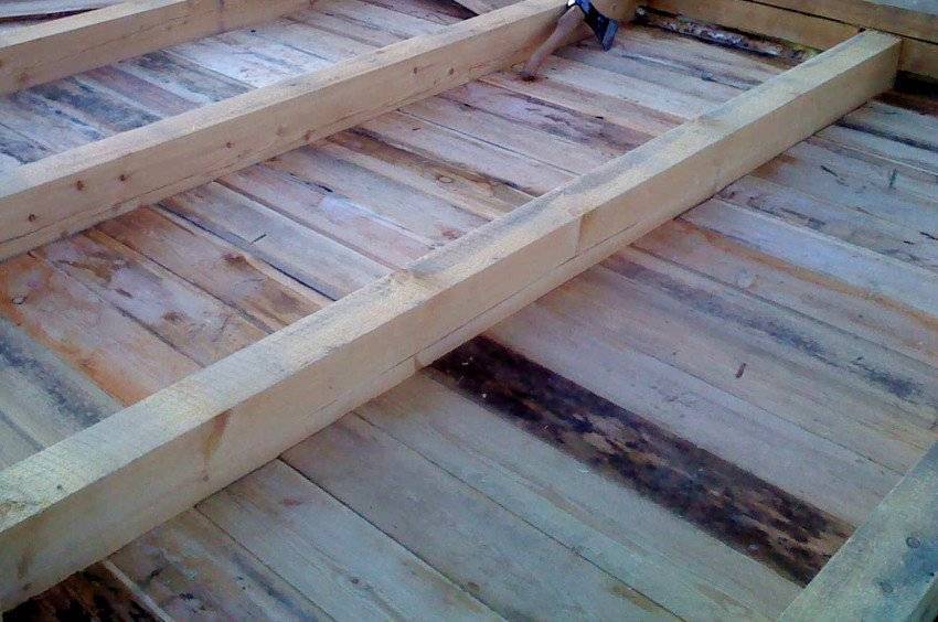- Размеры лагов не соответствуют реальным нагрузкам. Результат — участки прогибаются, деформируются, даже проламываются.