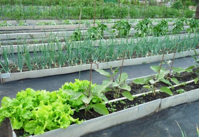 У грядок с бортами из плоского шифера имеется свой оптимальный размер. Боковые стенки требуют установки в землю на глубину до 40 см. Стенки должны иметь высоту до 0,7 м. У грядок ширина должны быть до 1,5 м. Нужно придерживаться направления – восток-запад. Длина также может доходить до 11 м.