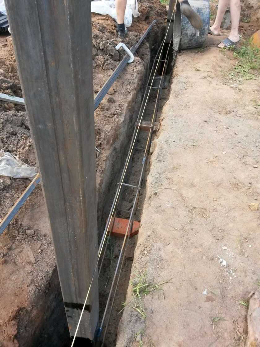 Перед тем, как построить забор из профлиста своими руками бетон должен приобрести необходимую прочность. Залитый фундамент нельзя трогать 7-14 дней – только тогда в зависимости от температуры воздуха он наберет необходимую прочность.