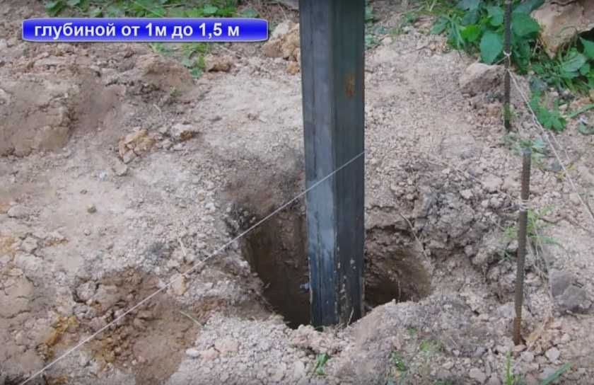 Рекомендуется углублять столбы для забора на глубину не менее 1 м или даже больше. Для чего удобно применять ручной ямобур – простое и удобное изобретение, которым можно работать даже в одиночку.