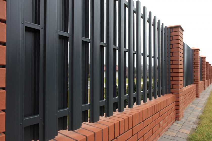 - профлист прекрасно сочетается с кирпичными или каменными столбиками, декоративными решетками из профтрубы, декоративным ленточным фундаментом.