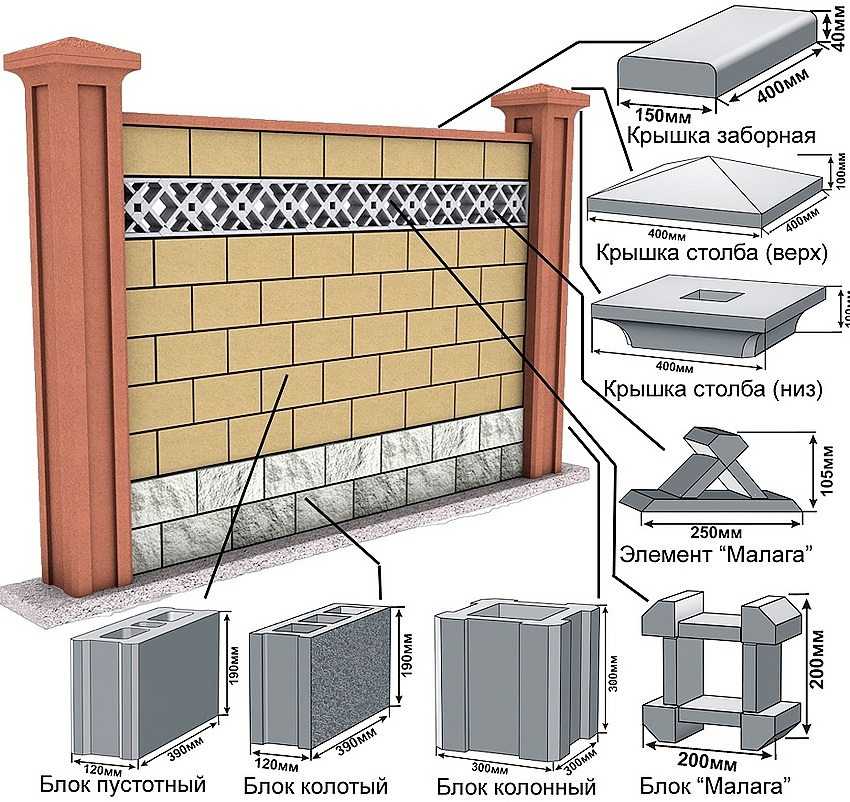 Для тех, кто предпочитает самостоятельно установить ограждение, станет выгодным приобретение готовых бетонных блоков для забора. Бетонные блоки изготавливаются пустотелыми, что значительно облегчает процесс возведения и позволяет спрятать внутри коммуникации или электропроводку для устройства периметрального освещения.