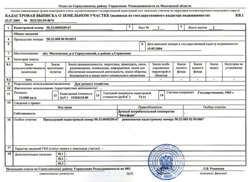 - Территории присвоен кадастровый номер и определена стоимость.