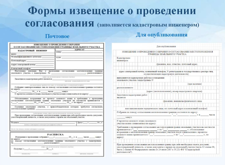 Это можно сделать при личном посещении соседей, а также направить им акты согласования по электронной почте или почте России.
