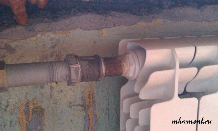 Если старый контур из металлических труб не планируется заменять новыми полипропиленовыми элементами, то для начала необходимо раскрутить все резьбовые соединения, посредством которых отопительный прибор соединяется с трубопроводом. Если соединения заржавели, то проще отрезать батарею от трубопровода при помощи болгарки.