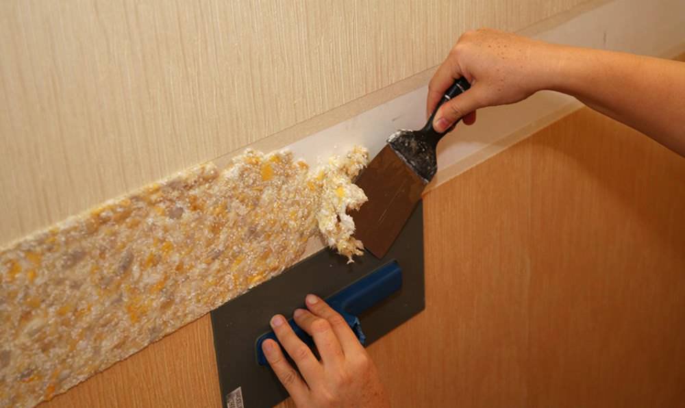- Ремонт поверхности без хлопот. Для того чтобы отремонтировать нужный участок поврежденной стены, достаточно увлажнить конкретное место, снять часть покрытия и нанести свежую смесь.