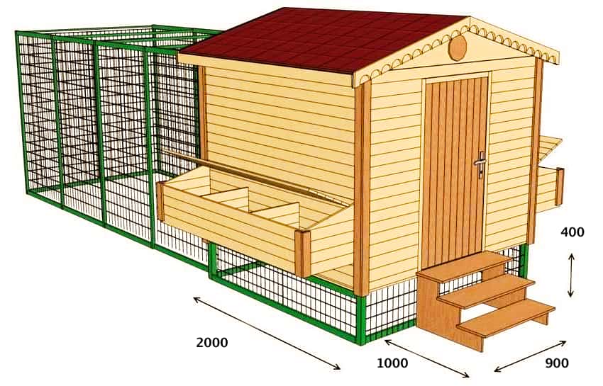 Пристраивается к курятнику в случае напольного, а не клеточного содержания птиц. Если при курятнике есть дворик, куры будут находиться на свежем воздухе в течение всего дня и заходить в помещение только с наступлением ночи.
