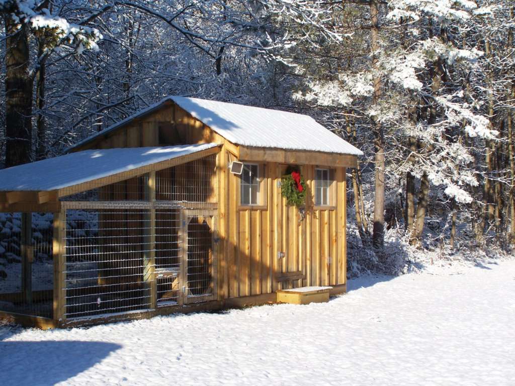 Зимний курятник — утепленное сооружение, где не предусмотрен выгул. В более теплых регионах, где температура редко опускается ниже 5-10 градусов мороза, территорию для прогулок все же оборудуют.